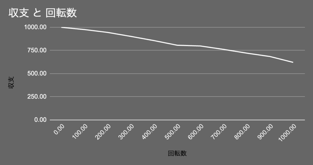実際に『サークルオブライフ(Circle of Life)』を1000ゲーム回した結果が以下の通りです!