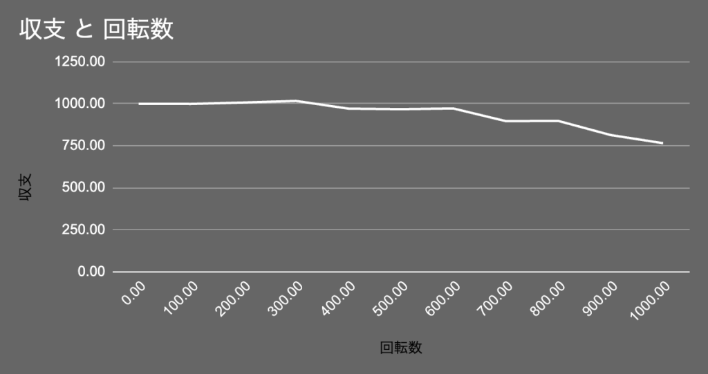 実際に『DJネコ(DJ Neko)』を1000ゲーム回した結果が以下の通りです!