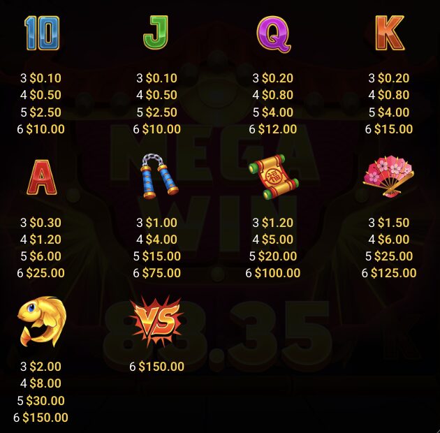 『道場デュエル(Dojo Duel)』は6リール4列、配当ライン16本のスロットゲームです。