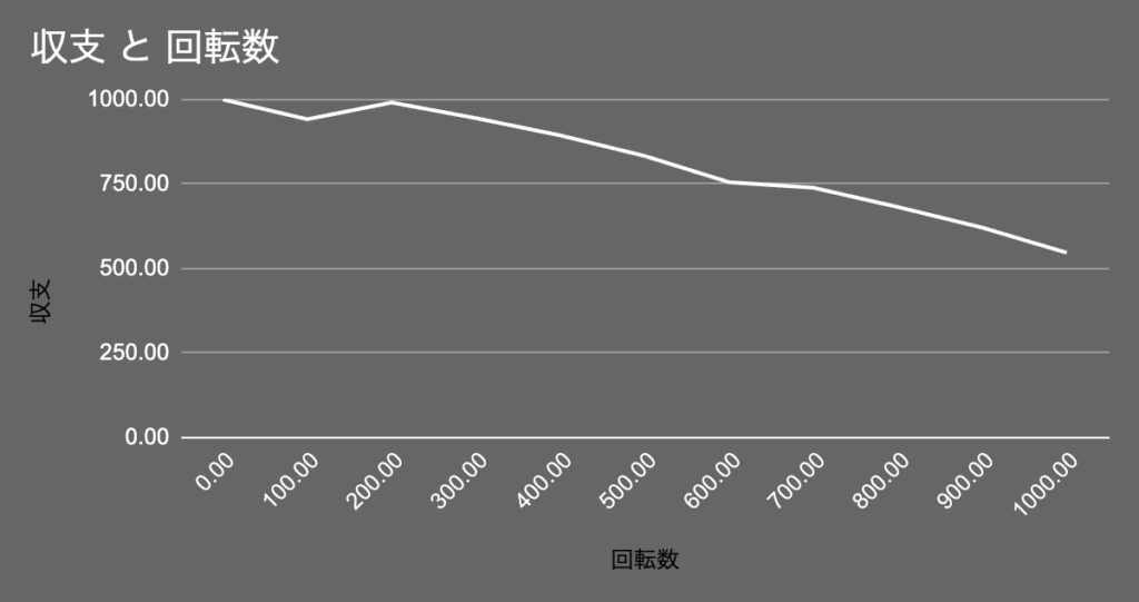 | 収支 | 1000.00 | 941.70 | 991.10 | 944.80 | 893.70 | 832.80 | 755.10 | 738.70 | 681.70 | 620.60 | 546.40 |