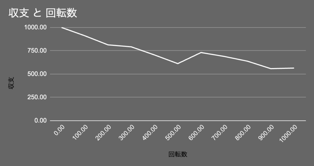 実際に『ファイアースタンピード アルティメイト(Fire Stampede Ultimate)』を1000ゲーム回した結果が以下の通りです!