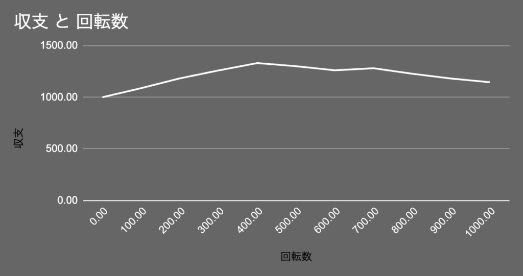 実際に『ゴールデンボーイ(Golden Boy)』を1000ゲーム回した結果が以下の通りです!