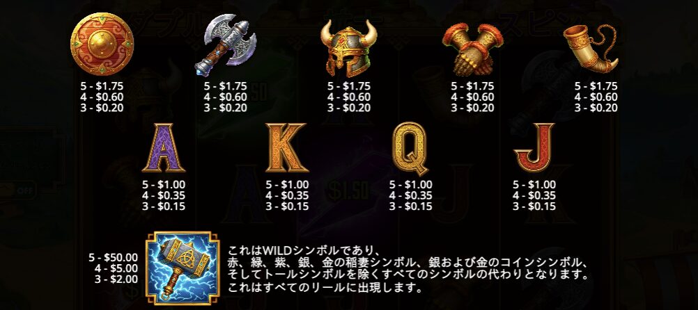 『ハンマーストーム(Hammerstorm)』は5リール3列、配当ライン40本のスロットゲームです。