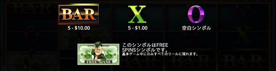 配当シンボルはフリースピンシンボルを入れて4種類しかなく、そのうちのOシンボルでは配当は成立しません。つまりバーシンボルでのみビッグウィンを狙うことが可能!