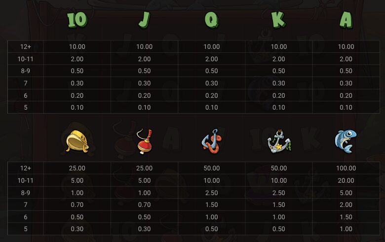 『ル フィッシャーマン(Le Fisherman)』は6リール5列、同じシンボルが縦横に5個以上出現すると配当成立となるドロップ方式のスロットゲームです。配当が成立したシンボルと同じシンボルは削除されます。