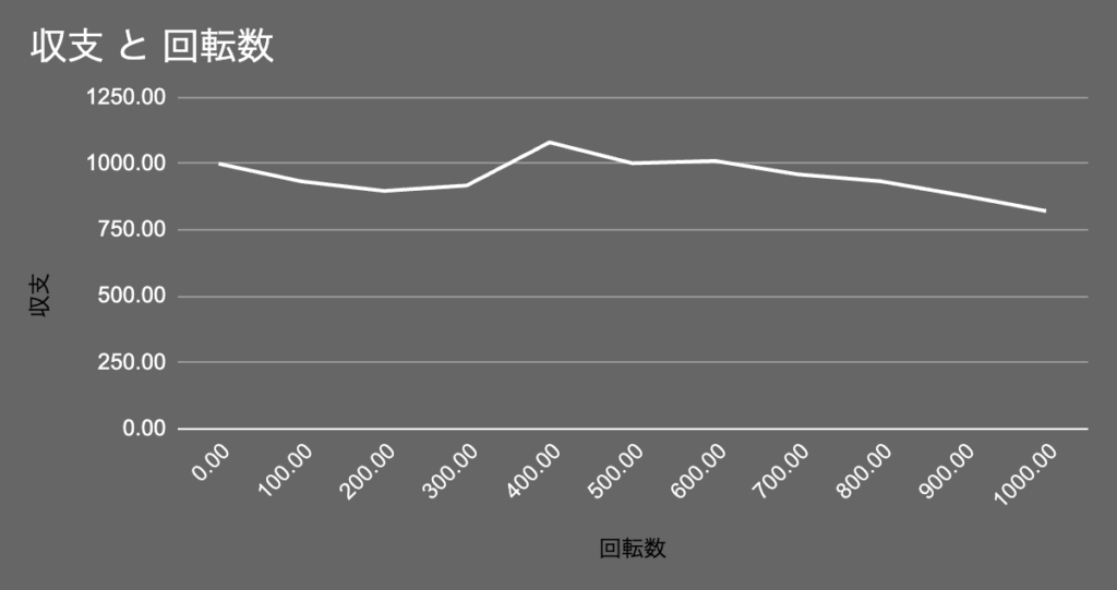 実際に『マッシブエックス(Massive x)』を1000ゲーム回した結果が以下の通りです!