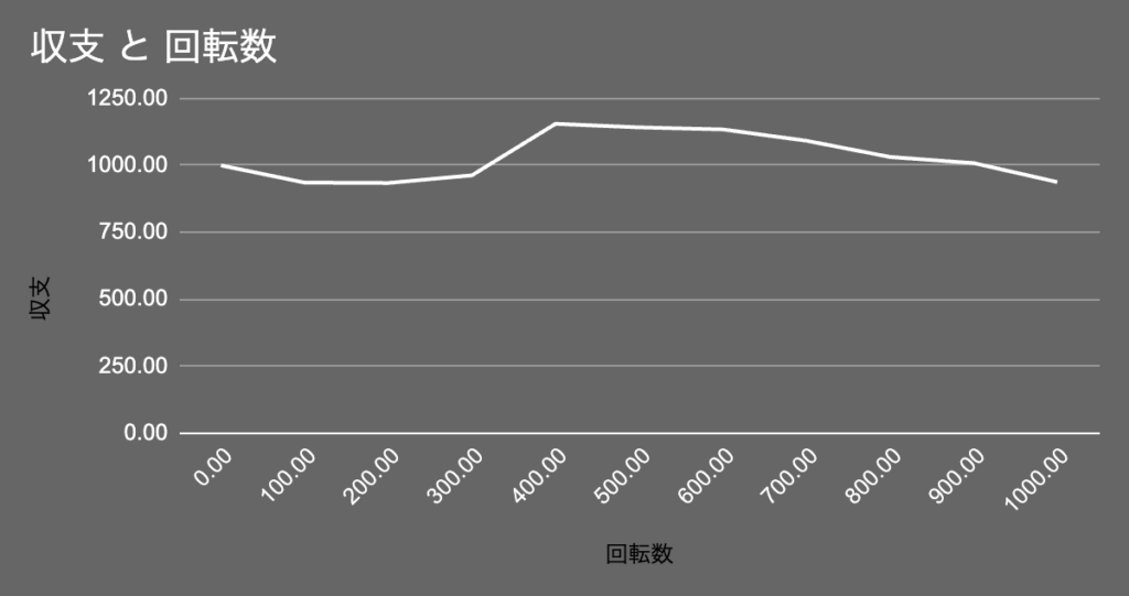 実際に『スピアーオブアテナ(Spear of Athena)』を1000ゲーム回した結果が以下の通りです!
