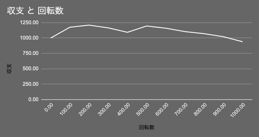 実際に『バンディット(The Bandit)』を1000ゲーム回した結果が以下の通りです!