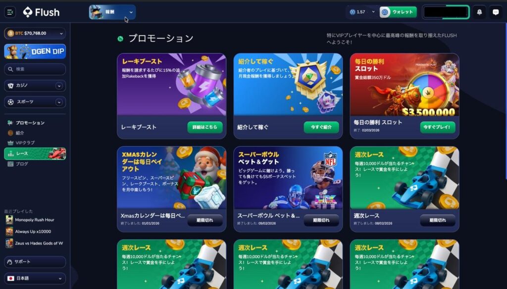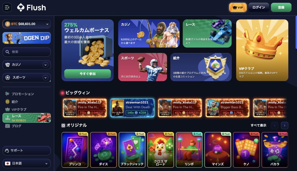 フラッシュカジノ(Flush Casino)は仮想通貨(暗号通貨)メインのオンラインカジノです!