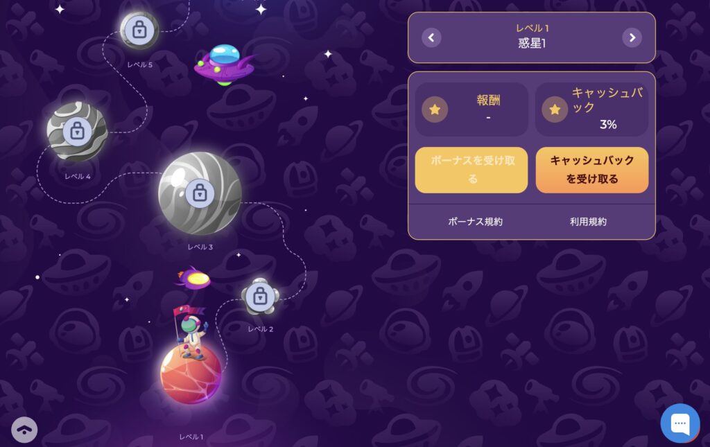 また、スロットで300JPYベットする毎に1CP獲得となり、レベルに応じた交換レートでボーナスと交換することが可能!出金条件や、キャッシュバック率などはレベル毎に異なるので、プレイする前に必ず確認しましょう!