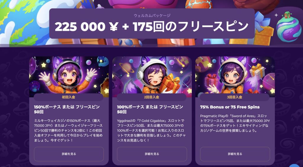 ミルキーウェイカジノ(Milkyway Casino)【初回〜3回目入金限定!最大225,000円のボーナス】を徹底解説!